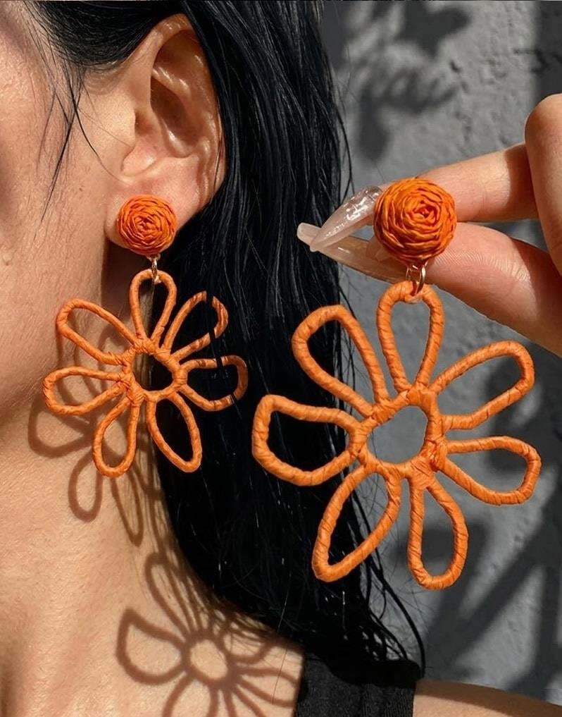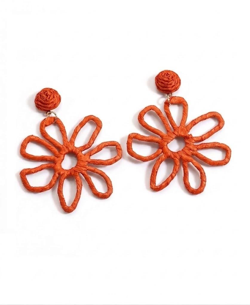 Çiçek Formlu Turuncu Hasır Küpe (HS22122)