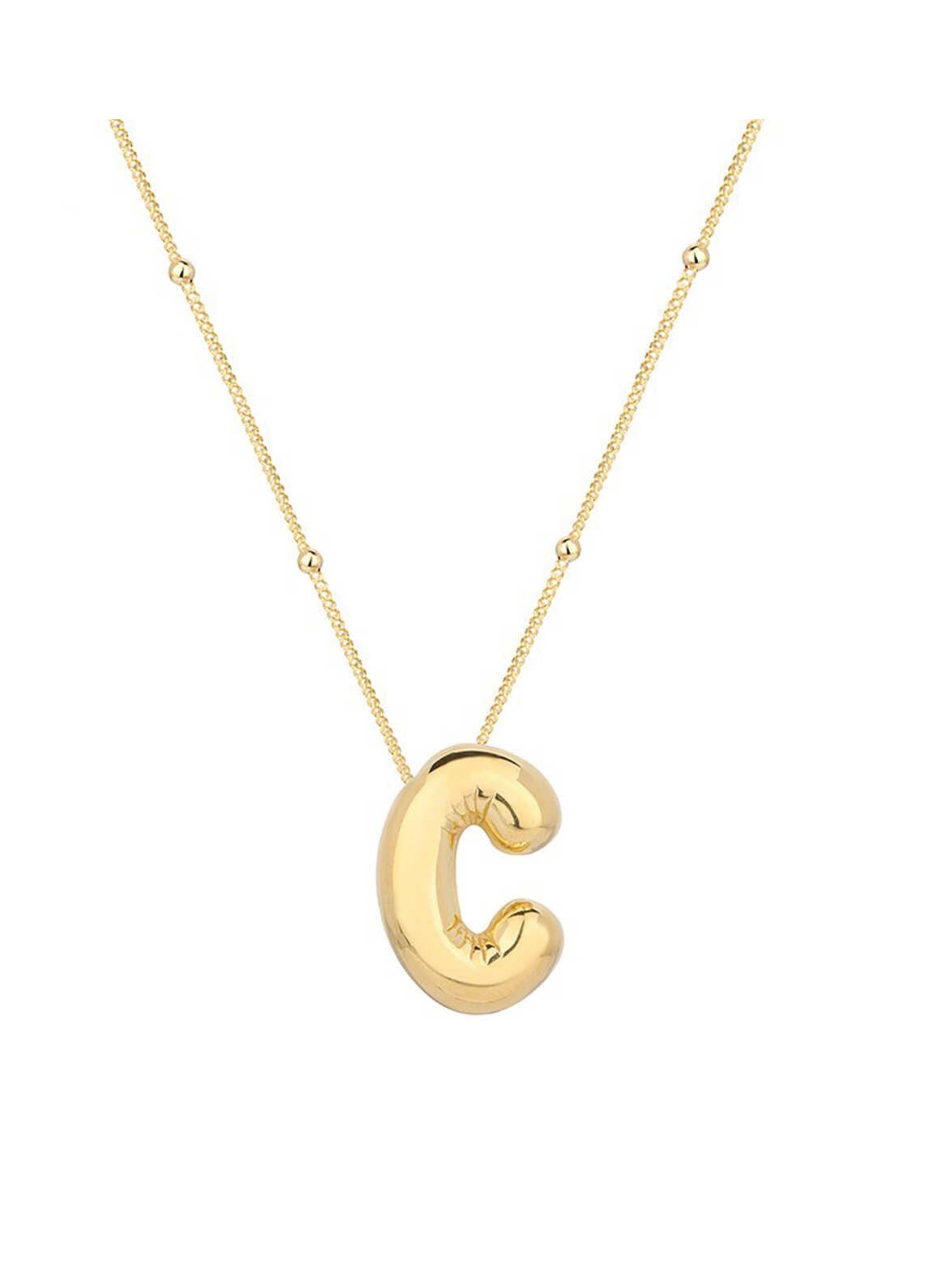 Gold Renk Çelik Balon C Harfi Kolye (HK87111)