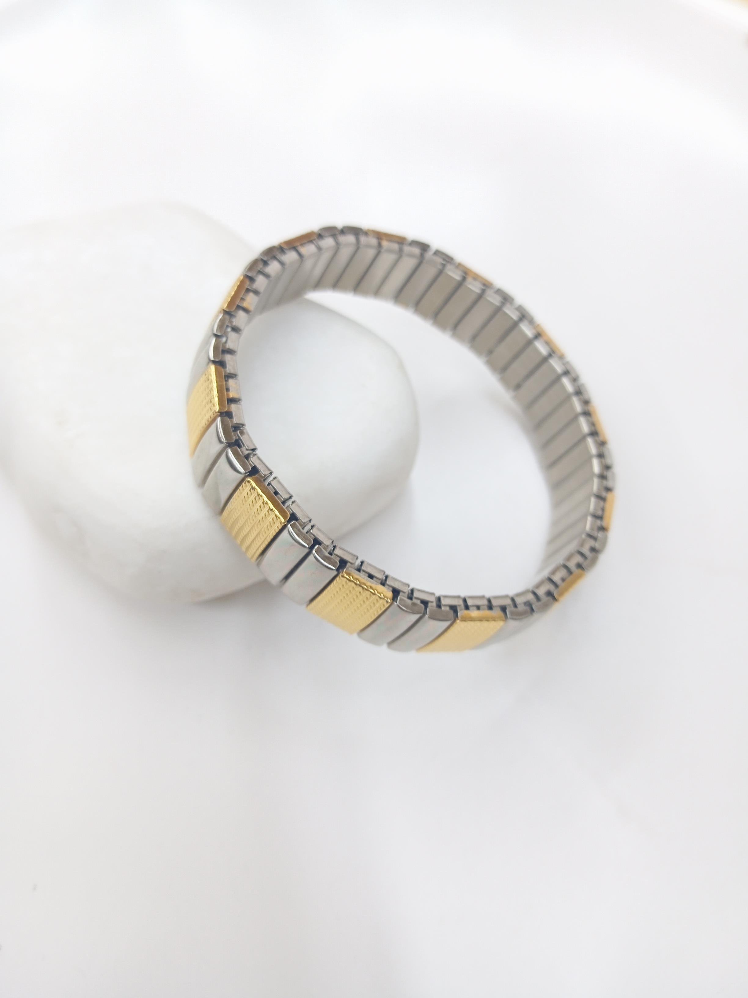 Gold Sütunlu Gümüş Renk Lastikli Çelik Bileklik / Model 424