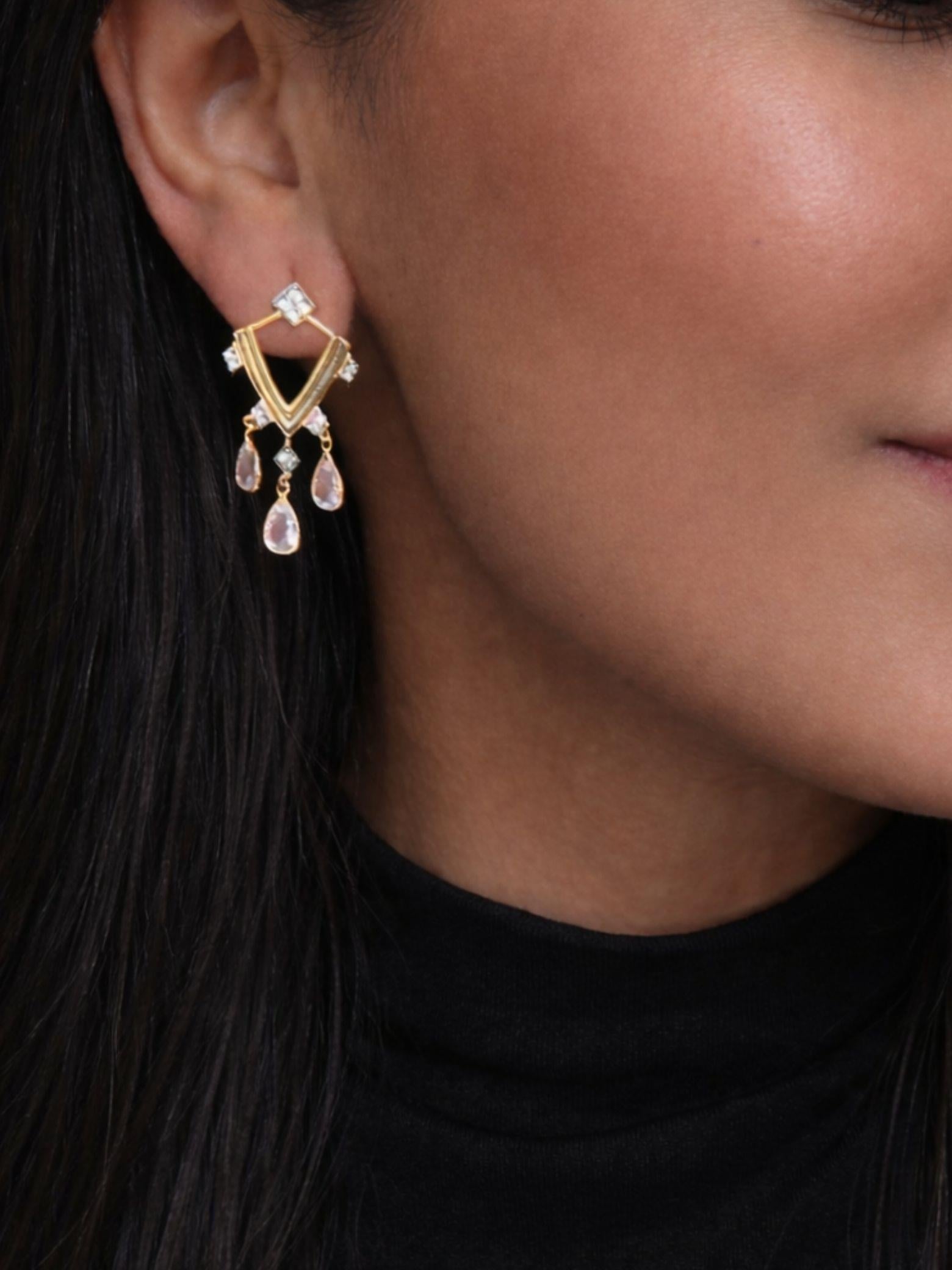 Zarif formu ve göz alıcı detaylarıyla öne çıkan bu küpe modeli, hem günlük kombinlerde şık bir tamamlayıcı hem de özel davetlerde iddialı, modern ve ışıltılı bir görünüm sunar.